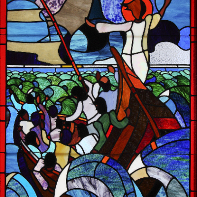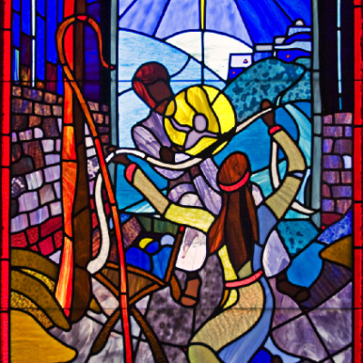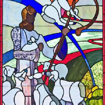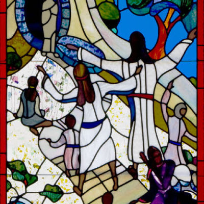 The inside of our sanctuary is filled with beautiful stained glass windows depicting stories and truths from the Bible.